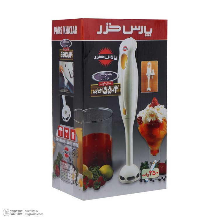 گوشتکوب برقی «پارس خزر» مدل «HB-5503AP» از محصولات پرکاربرد این شرکت است. این دستگاه میتواند بهعنوان گوشتکوب و مخلوطکن مورداستفاده قرار گیرد. بدنه و ظروف این دستگاه از جنس پلاستیک یا پلیمر هستند و درنهایت وزن دستگاه بسیار پایین میآید تا کارکردن با آن سادهتر شود. دستهی اصلی که درواقع موتور دستگاه است، با یک دکمه روشن و خاموش میشود. از طرف دیگر به ظروف و تیغهها متصل میشود تا کارایی خود را نشان دهد. اتصال به این تیغهها بسیار ساده است و تمیزکردن قطعات بهراحتی انجام میشود. پارس خزر یک شرکت بزرگ ایرانی بوده که از سال 1347 با همکاری شرکت توشیبای ژاپن آغاز به کار کرده است. این شرکت در زمینههای ساخت لوازمخانگی، فعالیتهای گستردهای را در کشور انجام میدهد.