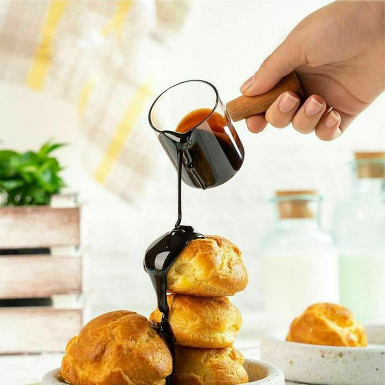 ـ دارای دسته چوبی ـ امکان قرار دادن روی شعله مستقیم ـ جنس بدنه: پیرکس ـ طول دسته: 5 سانتی متر ـ قابل استفاده در ماکروویو ـ قابل استفاده در کافی شاپ ها و رستوران ها ـ مناسب برای سرو سس، آبلیمو، روغن و ...