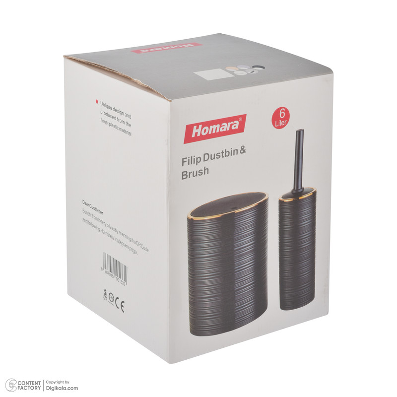 یک عدد سطل به ابعاد 25x20x20 سانتی متر و وزن 380 گرم یک عدد فرچه به ابعاد 37x9.5x9.5 سانتی متر و وزن 260 گرم