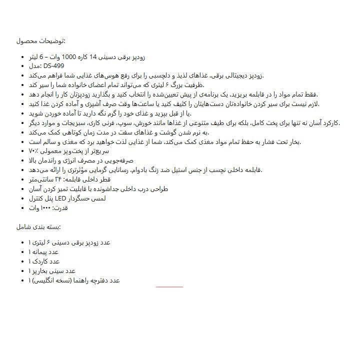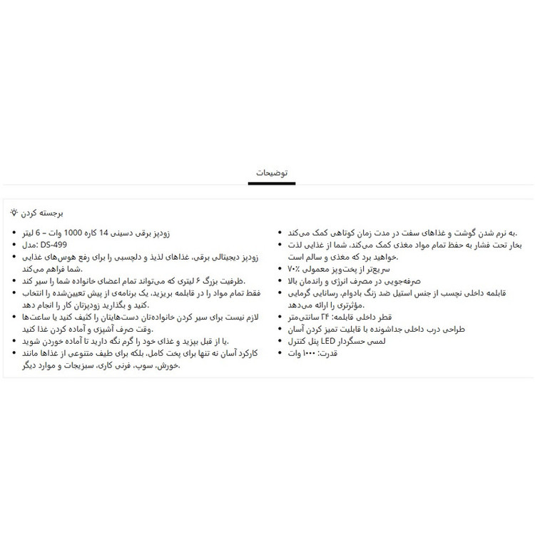 پلوپز 10 نفره دسینی مدل 12 کاره لمسی کد ds-499