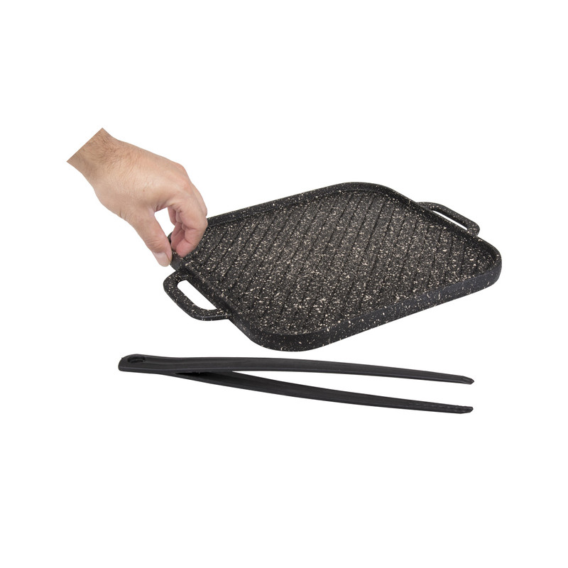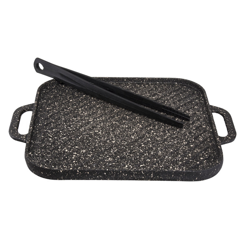 - همراه با یک انبر نسور با تحمل حرارت 220 درجه سانتی گراد - بدنه تابه از چدن واقعی (آهنربا بدنه تابه را جذب می نماید) - امکان استفاده از دو روی تابه