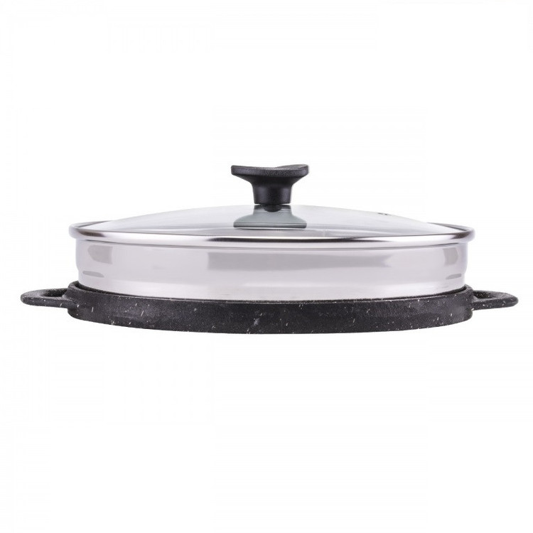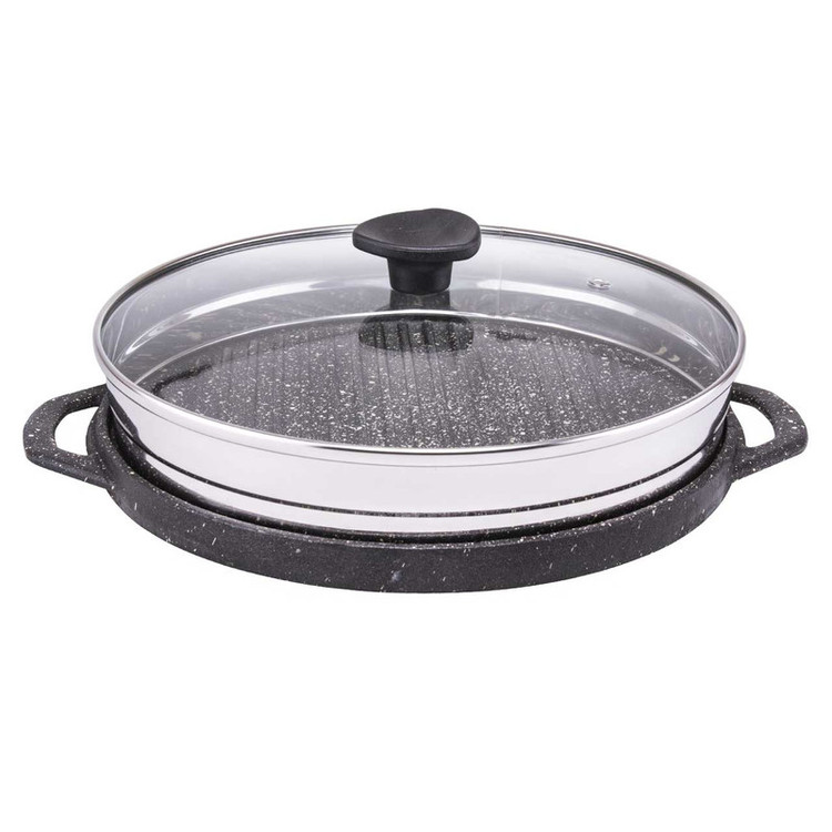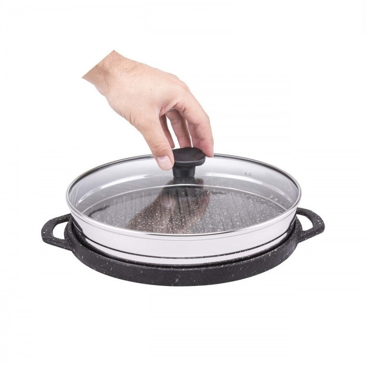 - بدنه تابه از چدن واقعی (آهنربا بدنه تابه را جذب می نماید) - درب شیشه و استیل ضد زنگ (آهنربا درب را جذب نمی کند) - امکان استفاده از دو روی تابه - یک طرف دارای سطح صاف - سمت دیگر سطح شیاردار