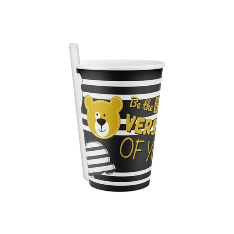 لیوان ساخته شده از پلاستیک فاقد BPA و مواد مضر دارای استاندارد مواد غذایی برای مایعات گرم مناسب نمی باشد دارای نی ثابت حجم 400 میلی لیتر شستشو با دست فاقد جعبه ساخت کشور ترکیه