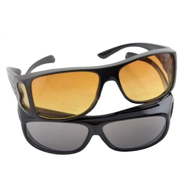 دو عدد عینک که یکی ضد آفتاب از روبرو وکنار را پوشش میدهد . و دیگری عینک دید در شب که نورهای روبرو را محو و تصویر شفاف را به چشم میدهد .