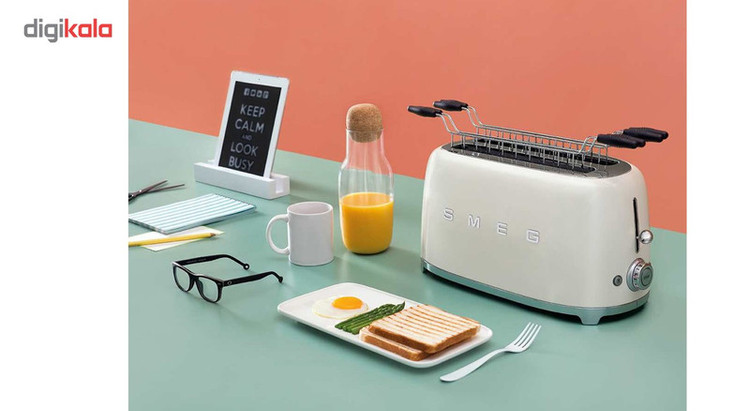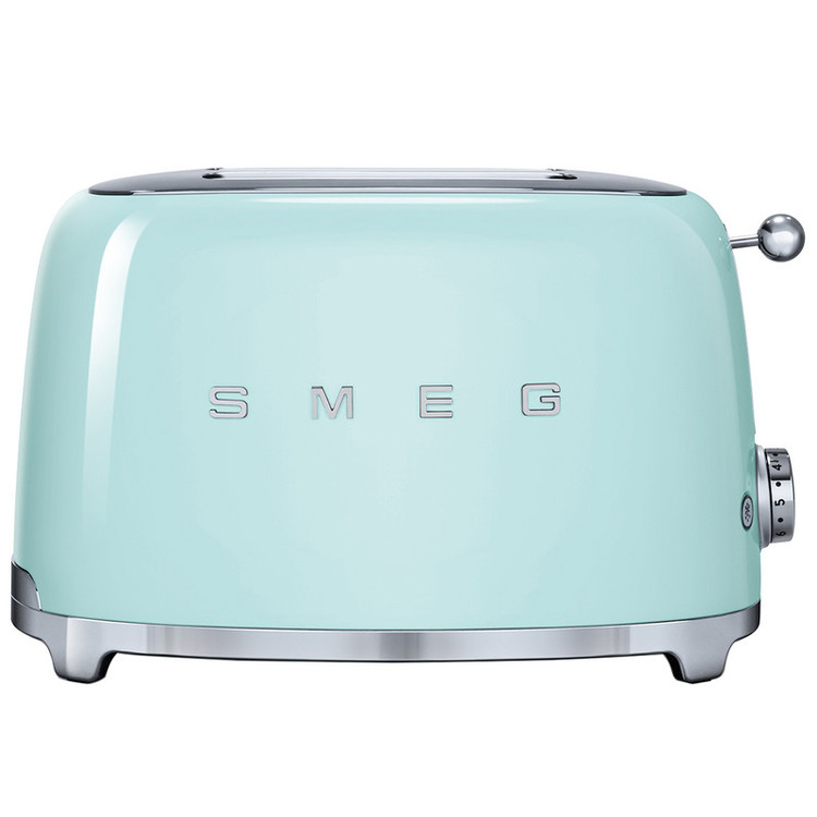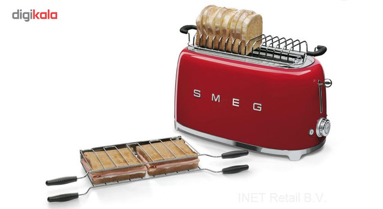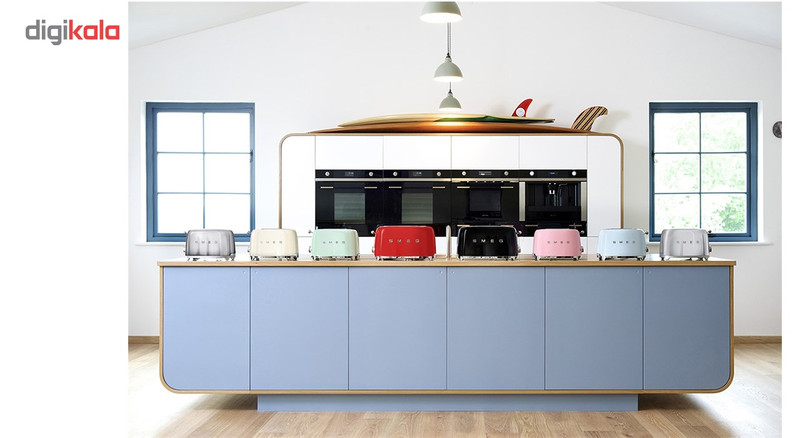 توستر اسمگ مدل TSF02 طراحی بسیار خاص و زیبایی دارد که یادآور وسایل خانگی قدیمی است. این مدل از سری 50s Style اسمگ است که با الگوبرداری از سبک طراحی دههی 60 و اوج دوران مدرنیته طراحی شدهاند. از همین رو در طراحی آنها از خطهای صاف و زاویههای تند استفاده نشده است. این سبک طراحی باعث میشود دستگاه حس خشک و صنعتی یک ماشین را نداشته باشد و بیشتر دکوراسیون آشپزخانه را گرم و صمیمی کند. این توستر دارای ۴ جای نان است و از این رو برای خانوادهها بسیار مناسب است. همانطور که از نام این دستگاه پیداست، کار اصلی آن تست کردن نان است. باوجود قابلیت تنظیم حرارت، کاربر میتواند نان تست خود را به میزان مورد علاقهی خود تست کند تا کاملا ترد، نیمه ترد یا نرم باشد. البته برای دستگاه دکمهی توقف هم در نظر گرفته شده تا کاربر بتواند فرایند تست شدن را متوقف کردن و میزان تردی نان را بسنجد. البته که توستر غیر از کار اصلی خود، برای یخ زدایی نان هم کاربرد دارد. شاید این مفیدترین کاربرد توستر باشد چون مشکل گرم کردن نان با مایکروفر یا روی گاز را حل میکند. وقتی نان را روی اجاق گاز گرم میکنیم احتمال سوختن آن بسیار زیاد است. همچنین وقتی نان را با مایکروفر گرم میکنیم تنها برای چند دقیقه حالت تازگی دارد و پس از آن کاملا خشک و سفت میشود. اما توستور با حرارت طبیعی، متداوم و نه چندان زیاد نان را یخزدایی و سپس گرم میکند. به این صورت نان طوری گرم میشود که انگار به تازگی از تنور بیرون آمده است. برای این که خورده نان داخل توستر جمع نشود و تمیز کردنش کاربر را دچار دردسر کند، یک سینی کشویی زیر دستگاه کار گذاشته شده که خوردههای نان روی آن میریزد و کاربر به سادگی آن را بیرون میکشد و تمیز میکند.