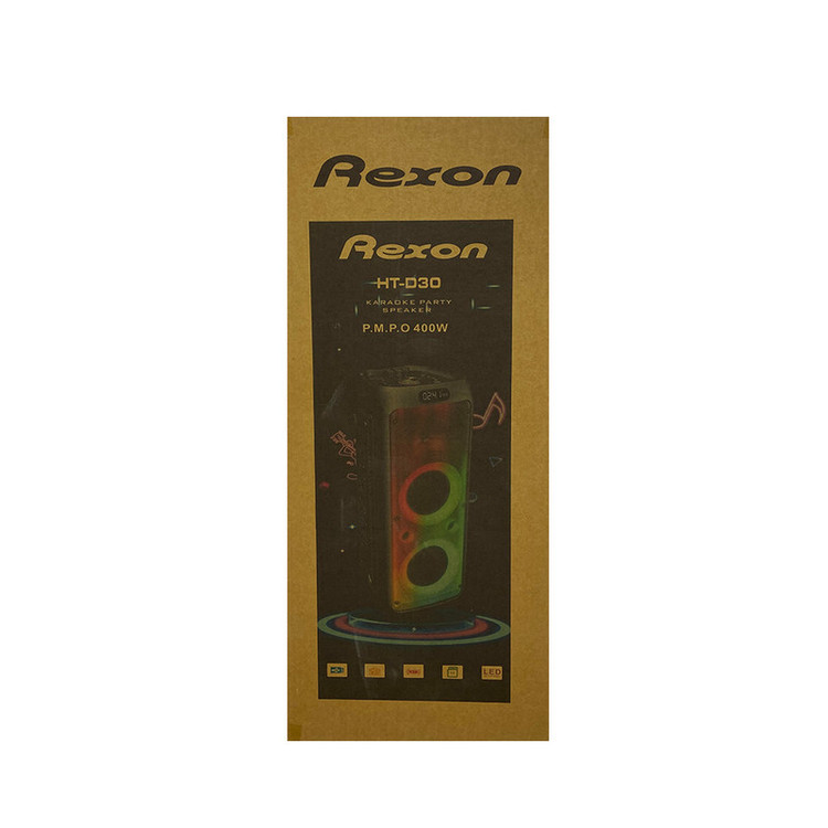 اسپیکر ایستاده شارژی رکسون مدل Rexon HT-D35، با امکانات گوناگون نظیر بلوتوث ، پورت USB، رادیو FM، ورودی میکروفن، یک میکروفن بی سیم و نورپردازی متنوع، آن را به بهترین انتخاب برای همه تبدیل میکند. این اسپیکر با توان و کیفیت صدای بالا، یکی از بهترین گزینههای بازار برای علاقمندان به موسیقی و سرگرمی می باشد.از قابلیت های مورد توجه این اسپیکر، استفاده از بلوتوث نسخه 5.0 است که امکان اتصال سریع و پایدار به دستگاههای مختلف را فراهم میکند. با داشتن پورت USB و درگاه کارت حافظه، میتوانید به راحتی از فایلهای موسیقی موجود در حافظه داخلی یا دستگاههای خارجی استفاده کنید. وجود رادیو FM در این اسپیکر، امکان گوش دادن به محتوای مورد علاقه در هر زمان و مکان را فراهم میکند.این اسپیکر دارای دو ورودی میکروفن می باشد. همچنین با داشتن میکروفن بی سیم و ریموت کنترل، این اسپیکر امکان کنترل و استفاده آسان را برای شما فراهم میکند. یکی از ویژگیهای جالب این اسپیکر، پنل دیجیتالی و نورپردازی و تولید جلوه های جذاب با افکت های متنوع است که محیطی جذاب و دلنشین را برای شنوندگان ایجاد میکند.با توان خروجی 400 وات، این اسپیکر قادر است صدای قوی و بینظیری را تولید کند.