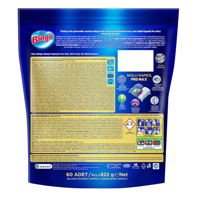 قرص ماشین ظرفشویی بینگو مدل Akıllı Kapsül Pro Max بسته 60 عددی