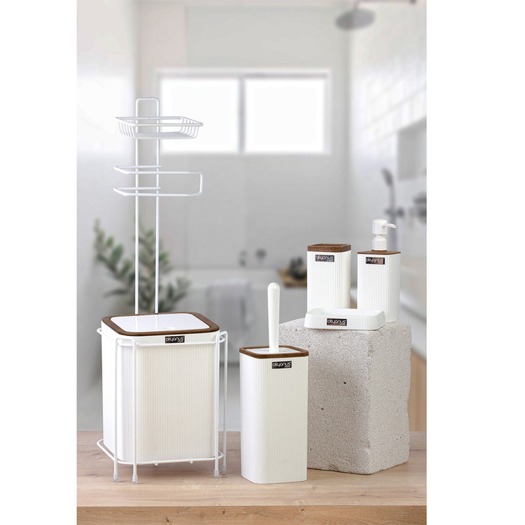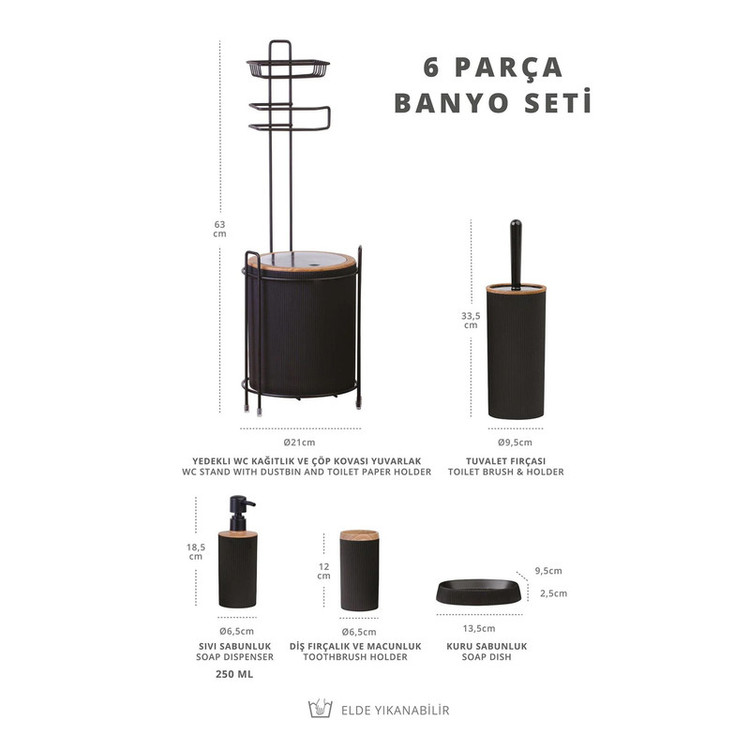 استند جا دستمالی : 63x21 فرچه دستشویی : 9.5x35.5 جا مسواکی : 6.5x12 جاصابونی : 9.5x2.5x13.5 مخزن مایع دستشویی : 6.5x18.5