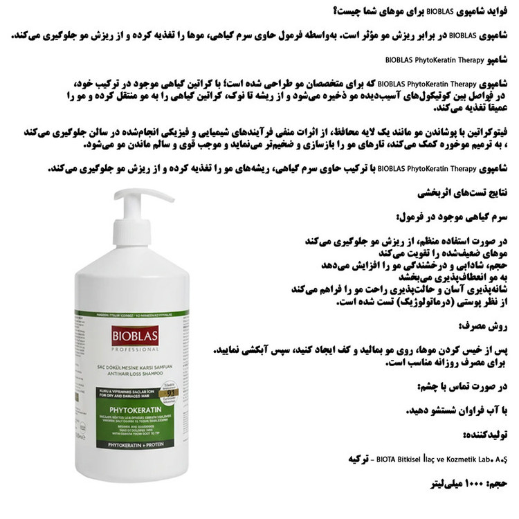شامپو ضد ریزش مو بیوبلاس مدل PhytoKeratin Therapy مناسب برای انواع مو حجم 1000 میلی لیتر