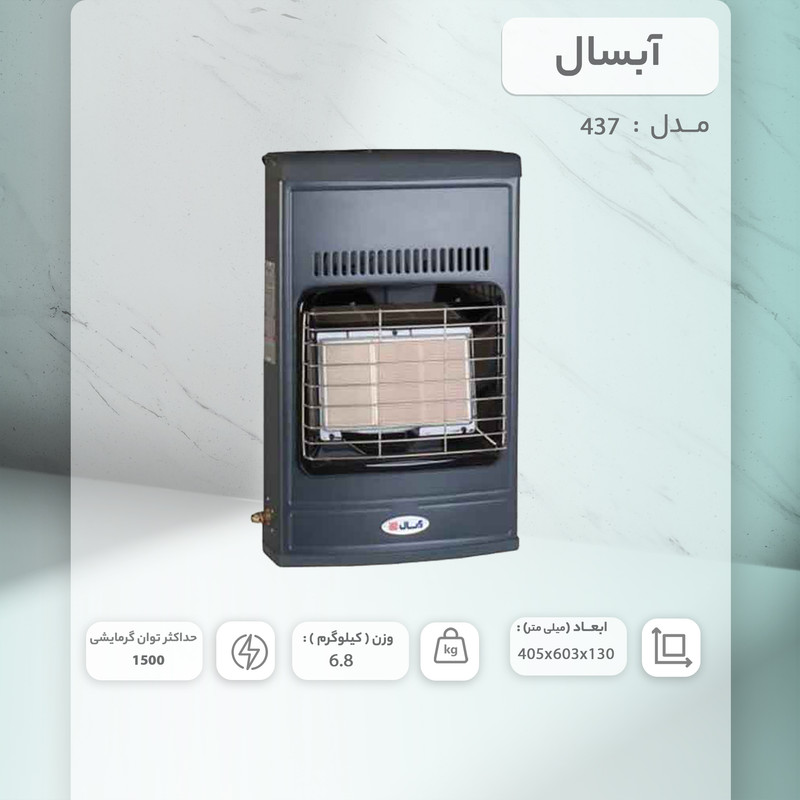 بخاری گازی دیواری، زمین آبسال مدل 437