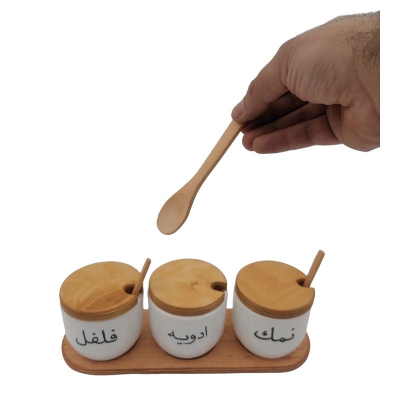 دارای 3 قاشق چوبی مخصوص ادویه