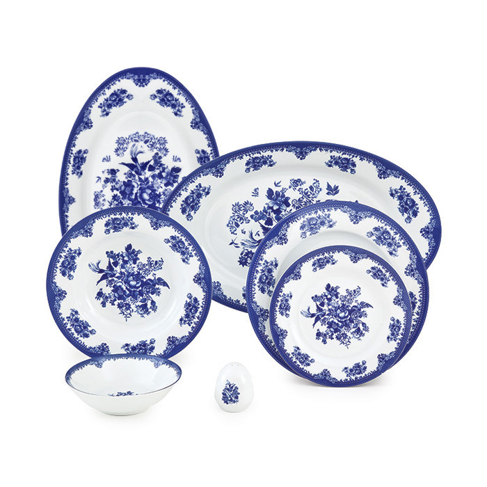شامل ظروف: دیس , بشقاب غذا خوری , بشقاب خورش خوری , پیش دستی , نمک پاش و فلفل پاش , پیاله