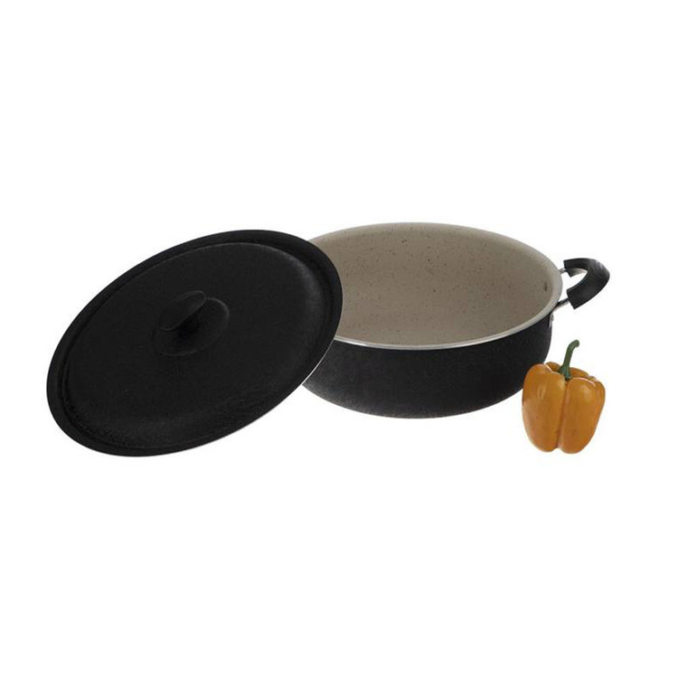 جنس:آلومینیوم ابعاد:قطر 34 سانتیمتر پوشش داخلی:گرانیت پوشش خارجی:رنگ کوره ای استاتیک مناسب برای:پخت و پز درب تابه فلزی