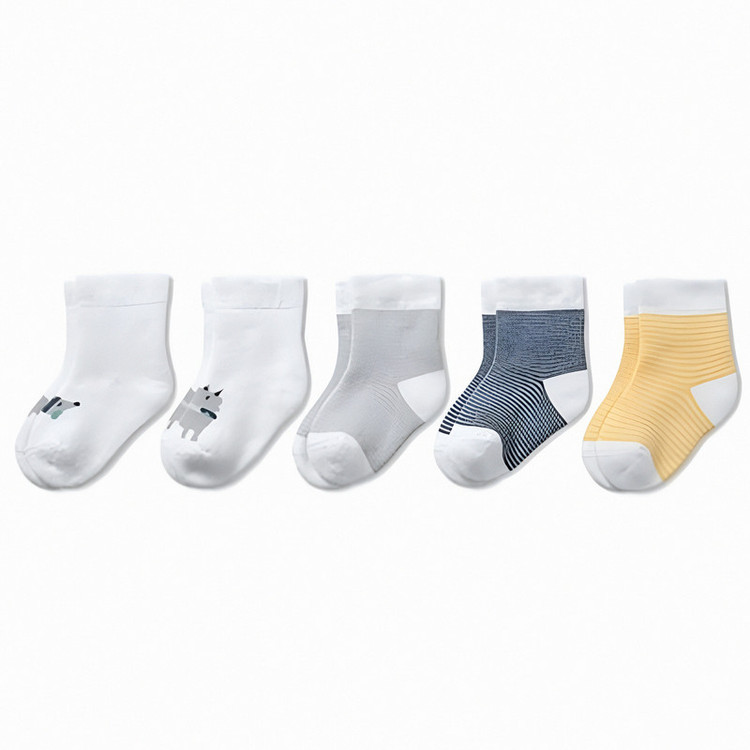 جوراب ساق کوتاه بچگانه مدل حوله ای کد CR 360391 بسته 5 عددی