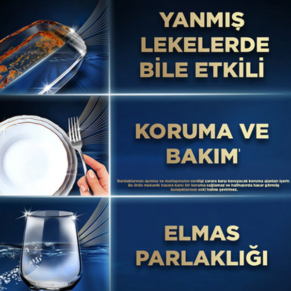 تمیز کنندگی , سفید کنندگی , براق کنندگی , لکه زدایی , چربی زدایی , جلوگیری از رسوبات آهکی , ایمن برای ماشین ظرفشویی , عدم آسیب به ظروف , درخشش بالای ظروف , از بین برنده بوی نامطبوع , قدرت پاککنندگی بالا , شوینده قوی