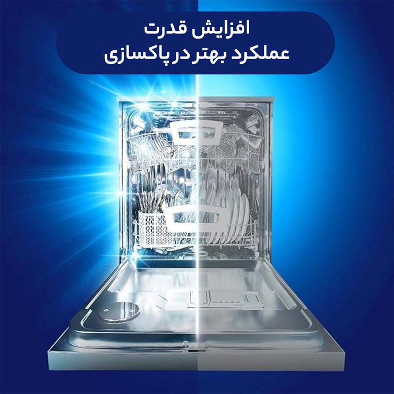 براق کنندگی , لکه زدایی , جلوگیری از رسوبات آهکی , تقویت عملکرد شوینده , ایمن برای ماشین ظرفشویی , قابلیت انحلال سریع در آب , عدم آسیب به ظروف , از بین برنده بوی نامطبوع , کاهش سختی آب , جلوگیری از ایجاد لکه آب روی ظروف , جلوگیری از ایجاد خش