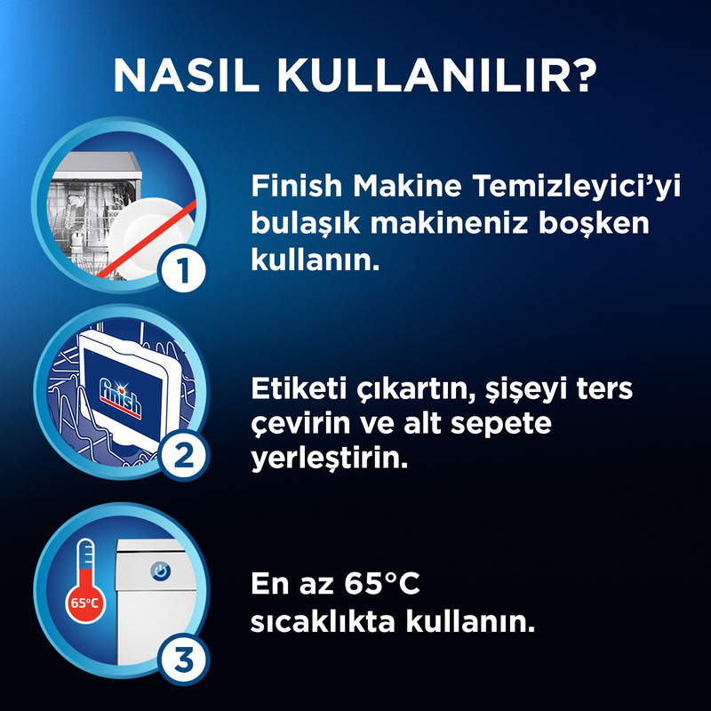برای تمیزکردن ماشین ظرفشویی، استفاده از مایع تمیزکنندهی فینیش «Finish» یکی از بهترین گزینههاست. این مایع آبیرنگ، قابلیت چربیزدایی و جلوگیری از تشکیل رسوبات آهکی در ماشین ظرفشویی را دارد. برای راحتشدن از دست چربی و رسوبات پنهانشده در ظرفشویی، میتوان از این محصول 250 میلیلیتری استفاده کرد. محلول تمیزکنندهی فینیش دارای یک لایهی آبیرنگ با قدرت چربیزدایی بالاست که بهعلت چگالی کم، بالای لایهی سفیدرنگ قرار گرفته است. این لایهی سفیدرنگ جهت جلوگیری از رسوب آهک و درخشندگی ماشین ظرفشویی استفاده میشود. هر ماه یکبار، باید زمانی که ماشین ظرفشویی خالی است، در پلاستیکی مایع تمیزکنندهی فینیش را باز کرد و آن را به صورت سروته و وارونه در طبقهی بالایی ماشین ظرفشویی گذاشت و طولانیترین برنامهی شستوشو یا برنامهای با دمای بالا را انتخاب و ماشین را روشن کرد. مایع با شروع به کار ماشین به اطراف پخش میشود و به طور فوقالعادهای همهی قسمتهای ماشین را رسوبزدایی و تمیز میکند. با استفاده از مایع تمیزکنندهی فینیش علاوه بر تمیزشدن و چربیزدایی ماشین ظرفشویی، ظرفها براق شده و بوی نامطبوع ماشین از بین خواهد رفت. فینیش از سال 1953 میلادی، تولیدکنندهی محصولات شوینده بوده است. این شرکت با بیش از شصت سال سابقه در چهل کشور دنیا فعالیت میکند؛ همچنین جهت کسب نتیجهی بهتر به همکاری با شرکتهای تولیدکنندهی لوازم و دستگاههای شویندهی خانگی نظیر Bosch ، Beko ، AEG ، Siemens ، Hoover ، Haier ، LG و... اقدام کرده است.
