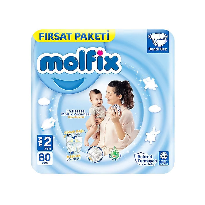 پوشک چسبی بچه مولفیکس مدل yeni nesil سایز 2 بسته 80 عددی