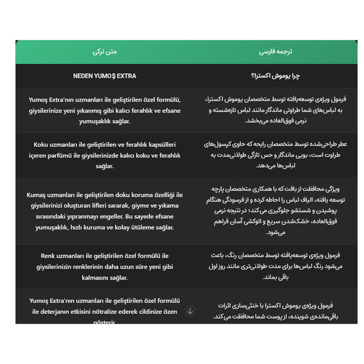 دارای رایحه , درخشانکننده البسه , محافظت از بافت لباس , حلالیت بالا در هر دما , محافظت از رنگ البسه