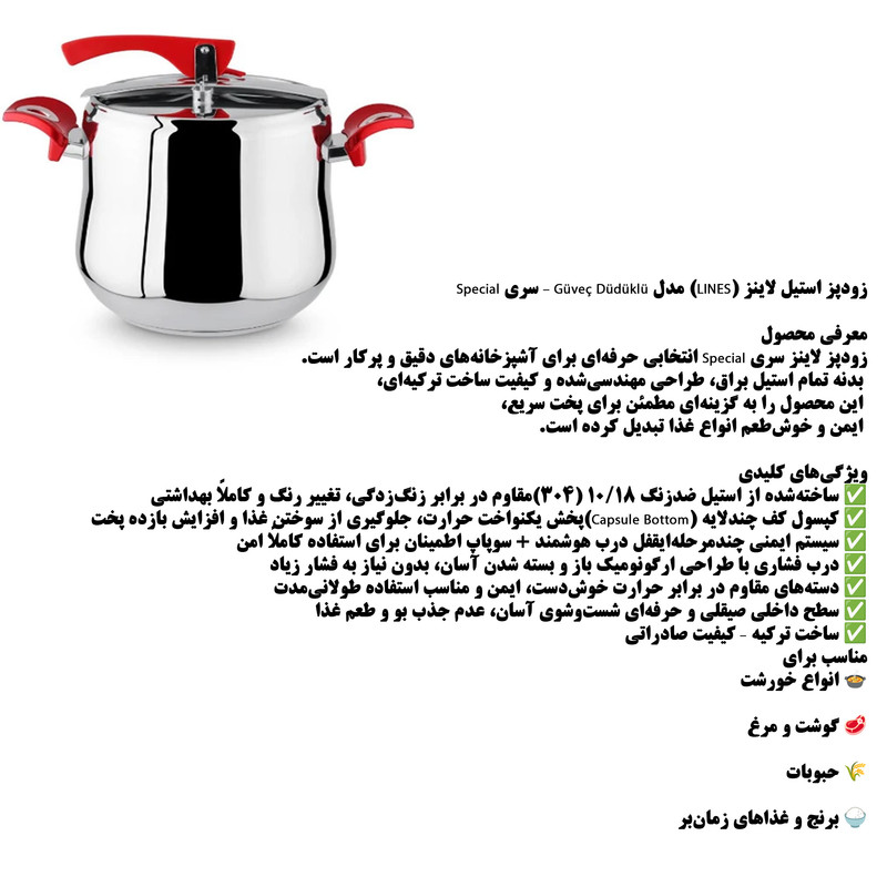 زودپز لینس مدل c_0523 گنجایش 8 لیتر