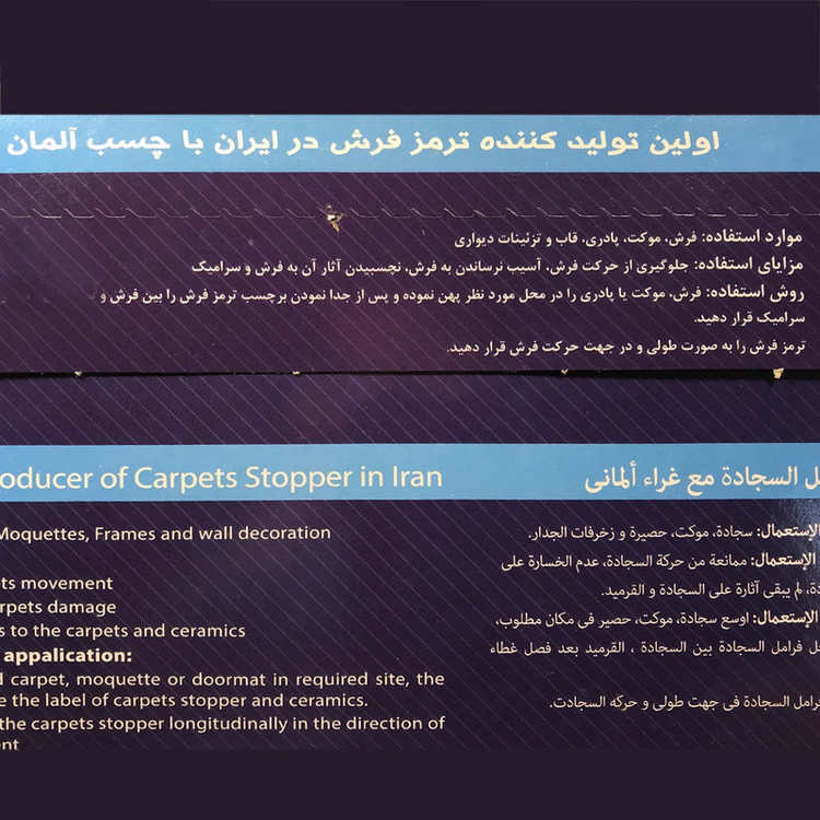 - جلوگیری از حرکت فرش - آسیب نرساندن به فرش - نچسبیدن آثار آن به فرش و سرامیک موارد استفاده: فرش، موکت، پادری، قاب و تزیینات دیواری توصیه: ترمز فرش را به صورت طولی و در جهت حرکت فرش قرار دهید. ابعاد