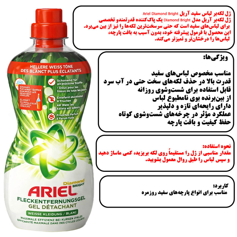 دارای رایحه , با قدرت پاککنندگی بالا , سفید کننده البسه سفید , فعال در آب سرد , ضدعفونی کنندگی , محافظت از بافت لباس , درخشانکننده البسه