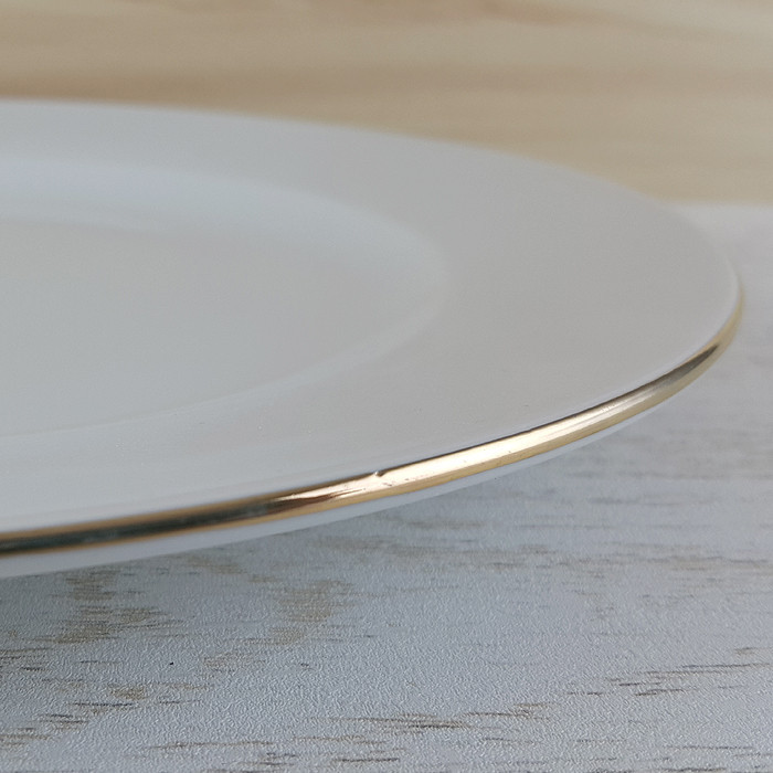 بشقاب غذاخوری مقصود مدل خط طلا کد 26 - دارای لبه طلاکاری شده - محتوی 6 عدد بشقاب چینی لب طلا - ابعاد هر بشقاب ارتفاع 2 و قطر 25 سانتیمتر