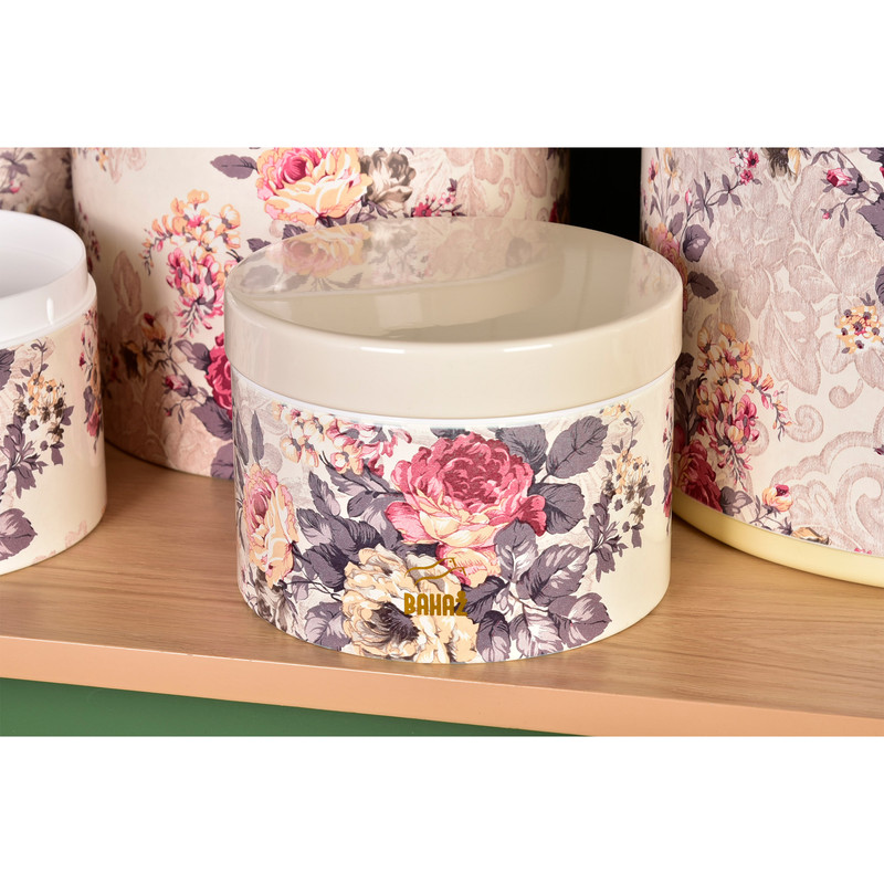 این ست شامل : 1 عدد سطل زباله ، 1 عدد سطل برنج ، 1 عدد سطل قند ، 1 عدد سطل شکر، 6 عدد جا حبوبات