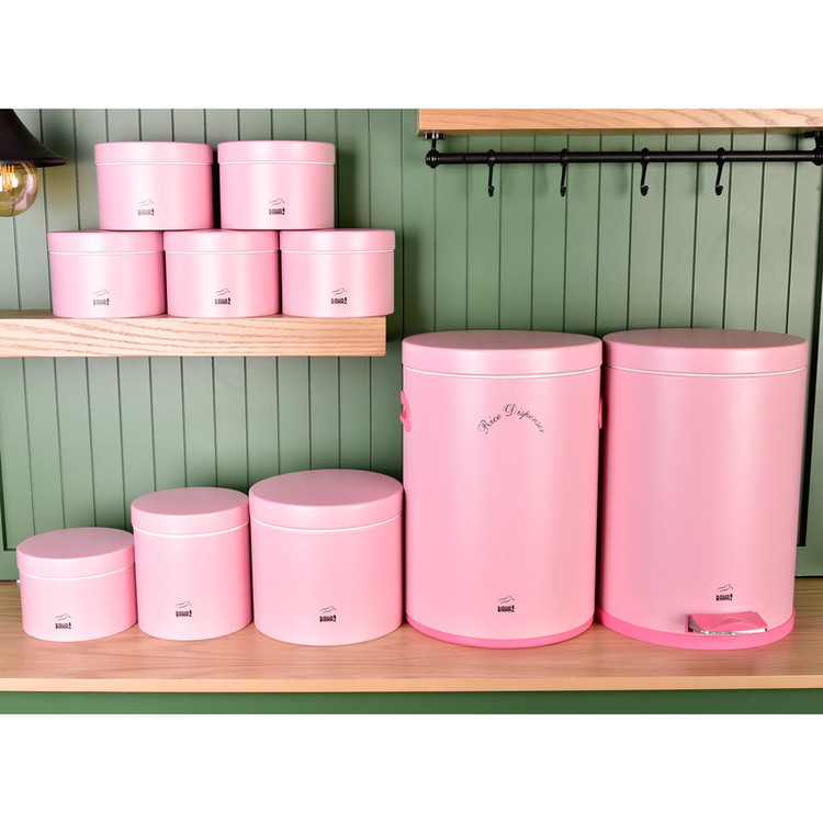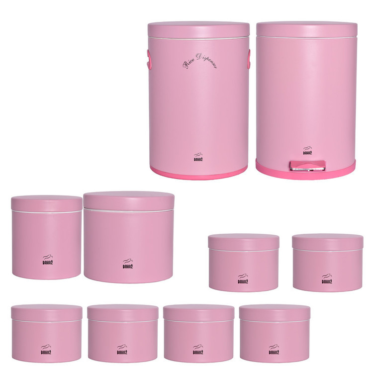 این ست شامل : 1 عدد سطل زباله ، 1 عدد سطل برنج ، 1 عدد سطل قند ، 1 عدد سطل شکر، 6 عدد جا حبوبات