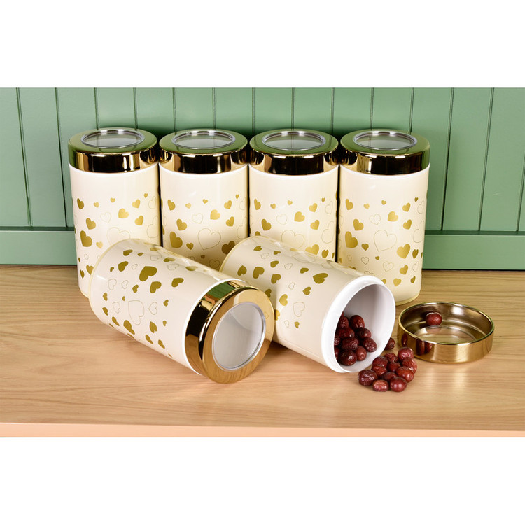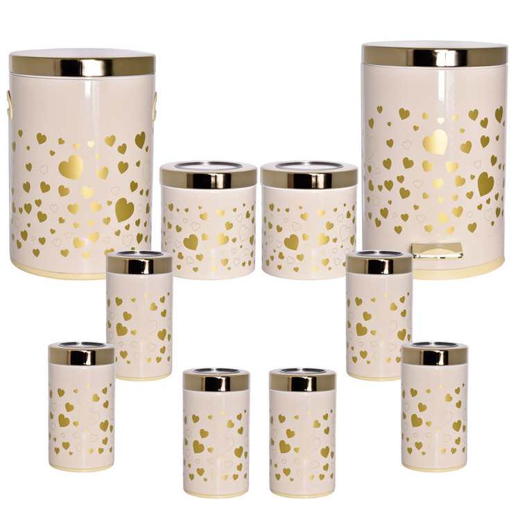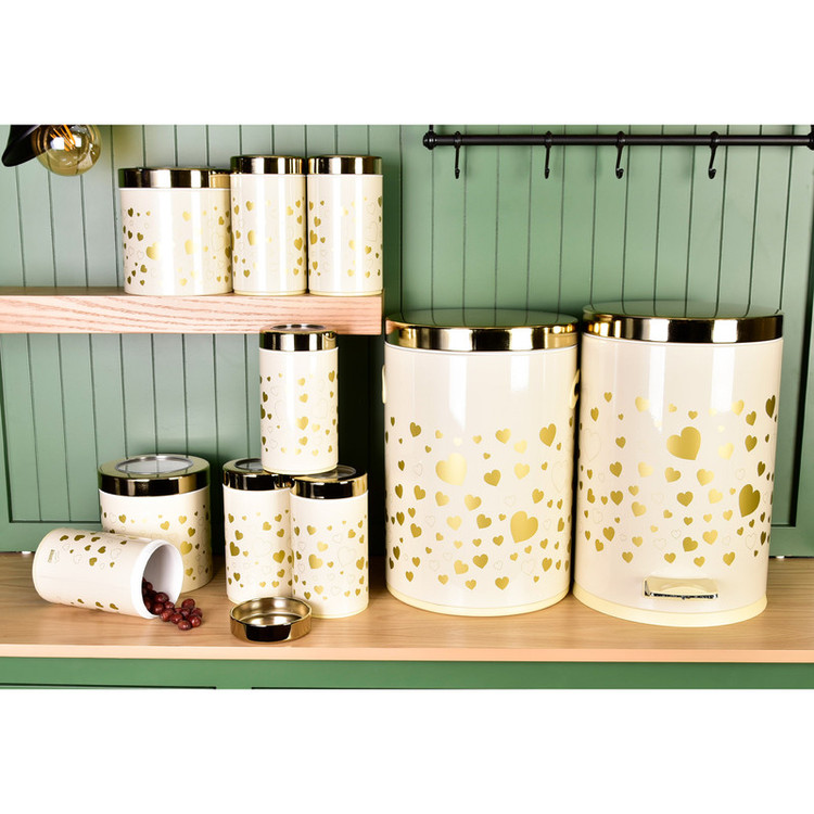 این ست شامل : 1 عدد سطل زباله ، 1 عدد سطل برنج ، 1 عدد سطل قند ، 1 عدد سطل شکر، 6 عدد جا حبوبات