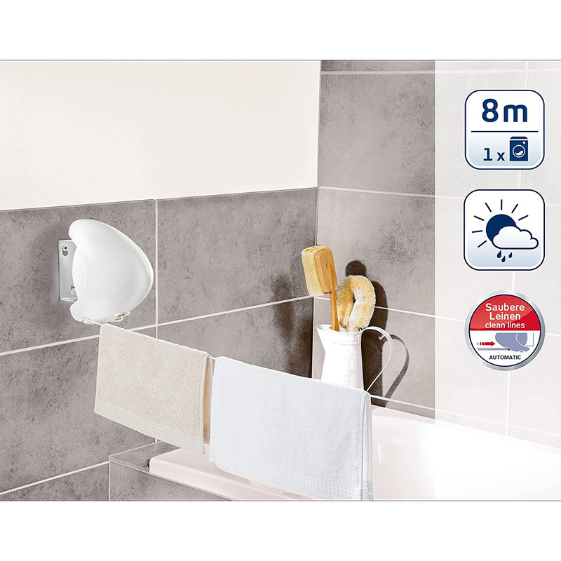 بند رخت با قابلیت جمع شدن مناسب استفاده در فضای داخل و خارج از منزل معادل 8 متر طناب با قابلیت تحمل 6 کیلو وزن نصب آسان با استفاده از دستور العمل درون بسته بندی دارای جعبه و بسته بندی مشابه تصاویر مبدا برند و طراحی در کشور آلمان ساخت کشور چین