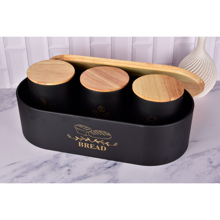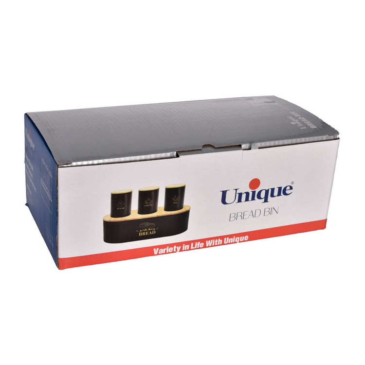 ظرف نان یونیک کد 4492 به همراه بانکه از جنس فلز می باشد و دارای مقاومت در برابر ضربه - دارای قابلیت تازه نگه داشتن نان - ساخته شده از ترکیب استیل و چوب - دارای فضای کافی برای نگهداری نانهای حجیم - سه ظرف جداگانه مناسب برای چای، قهوه، شکر و غیره - دارای ۳ عدد ظرف استوانهای با ابعاد ۱۱ × ۱۱ × ۱4 سانتیمتر