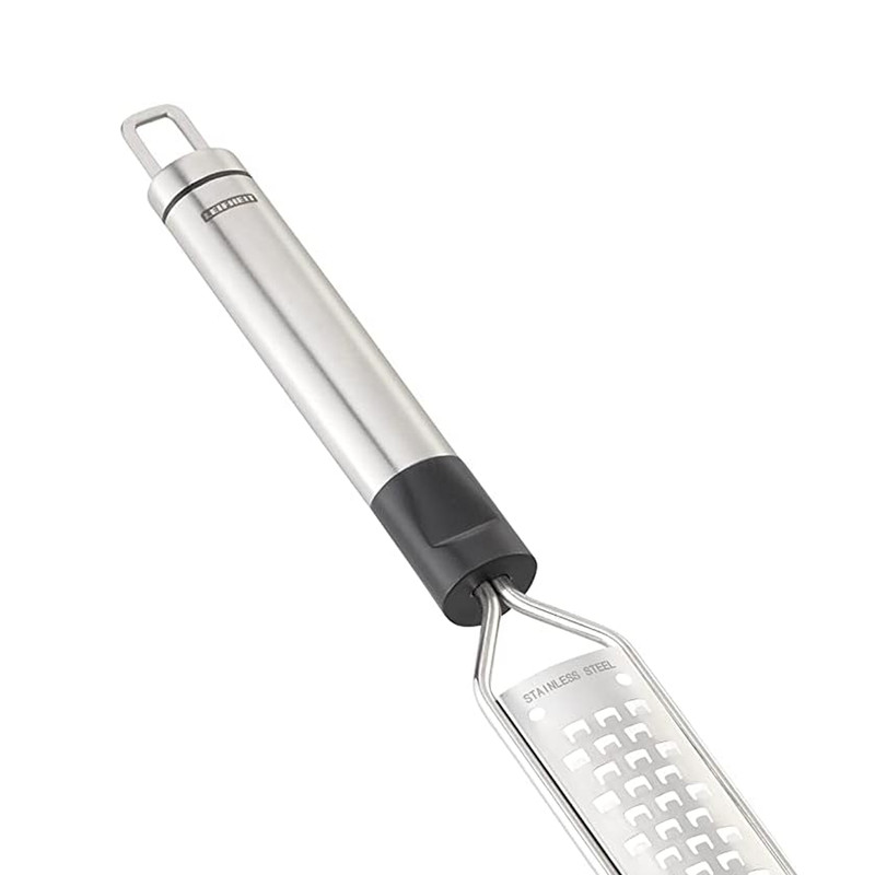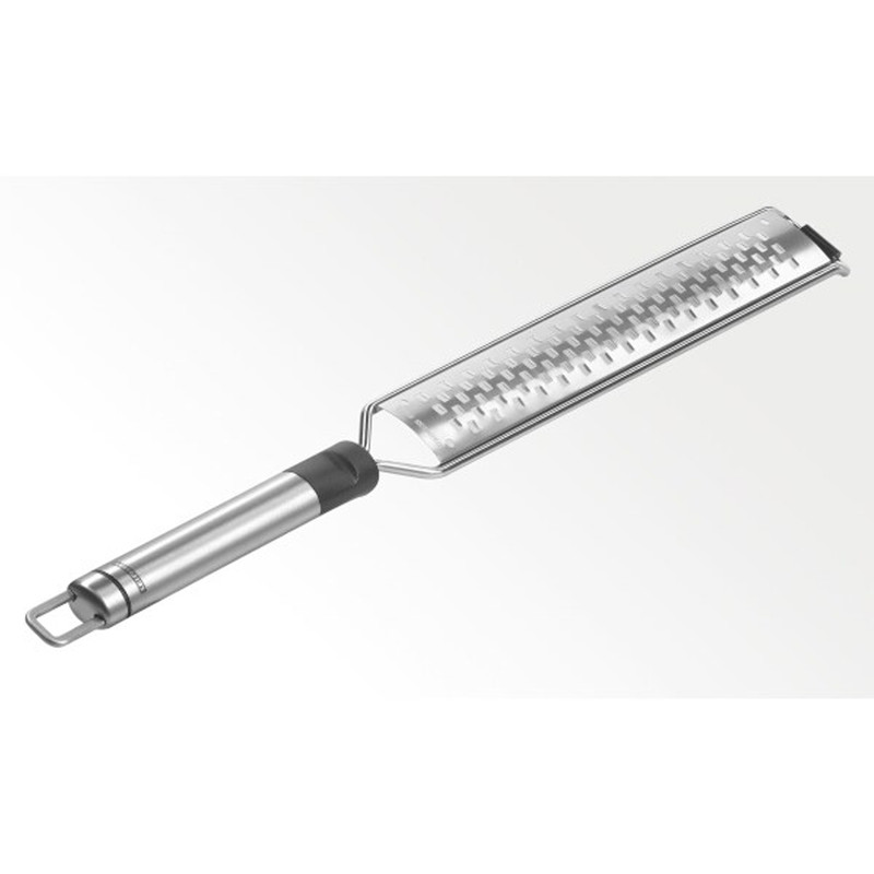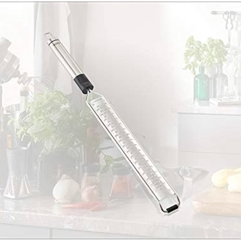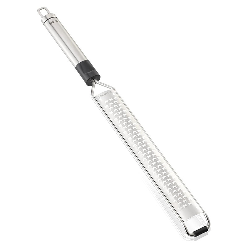 برند آلمانی لایف هایت از جمله تولید کنندگان بسیار معتبر شوینده های تخصصی گروه خانه و آشپزخانه می باشد. این برند آلمانی با بیش از 60 سال سابقه در امر تولید در میان مصرف کنندگان به تولید محصولاتی با کیفیت بسیار بالا و استفاده از نوآوری و خلاقیت در طراحی شهرت دارد. رنده مدل PROLINE کد 30801 در دسته رنده های خاص قرار می گیرد.این رنده حدود 40 سانتی متر طول داشته و تیغه آن از استیل ضد زنگ و بسیار برنده ساخته شده است لذا با ایجاد برشهای دقیق و یکدست از هدر رفتن عطر و طعم مواد غذایی جلوگیری کرده و مناسب برای رنده کردن پنیر، شکلات ، زنجبیل ، جوز هندی ، سیر و پوست لیمو و به طور کلی انواع مواد غذایی به شکل ریز است.بدنه این رنده از جنس استیل ضد زنگ است و درقسمت انتهایی قطعه ای پلاستیکی جهت جلوگیری از لغزش به هنگام استفاده دارد.به هنگام عدم استفاده با قرار دادن روکش مخصوص رنده روی تیغه آن از صدمه دست به هنگام برداشتن رنده از کشو جلوگیری کنید.این رنده دارای حلقه مخصوص جهت قرار گرفتن روی آویز است.شما می توانید این رنده را به همراه ظروف دیگر در ماشین ظرفشویی قرار دهید.