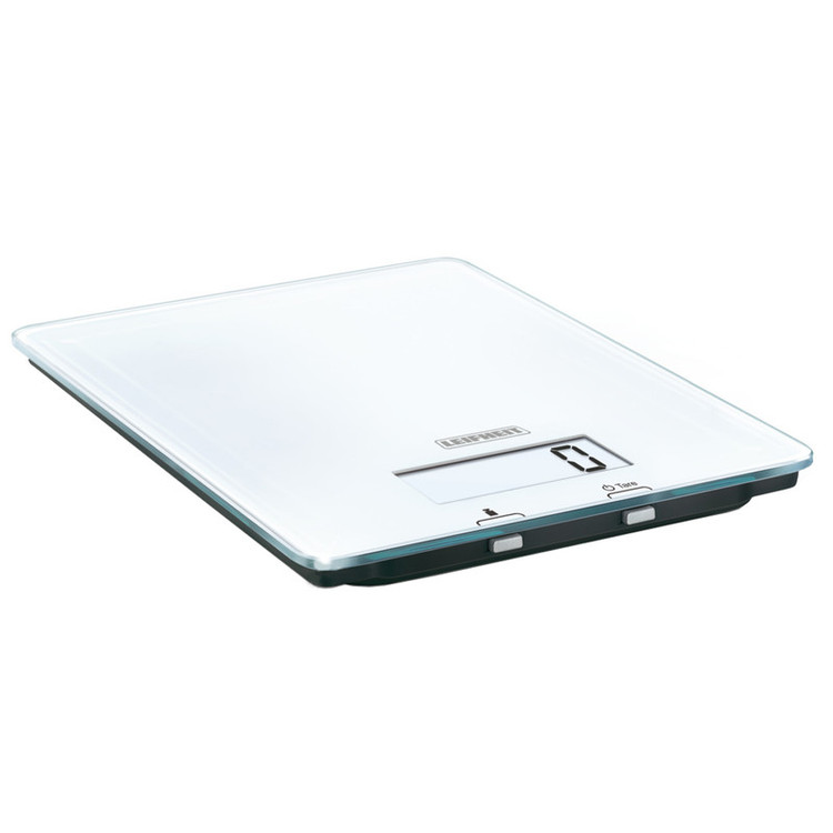 نمایشگر دیجیتال بزرگ همراه با یک عدد باطری درای دکمه روشن و خاموش دارای دکمه صفر کردن وزن ظرف رویه شیشه ای مقاوم مبدا برند کشور آلمان