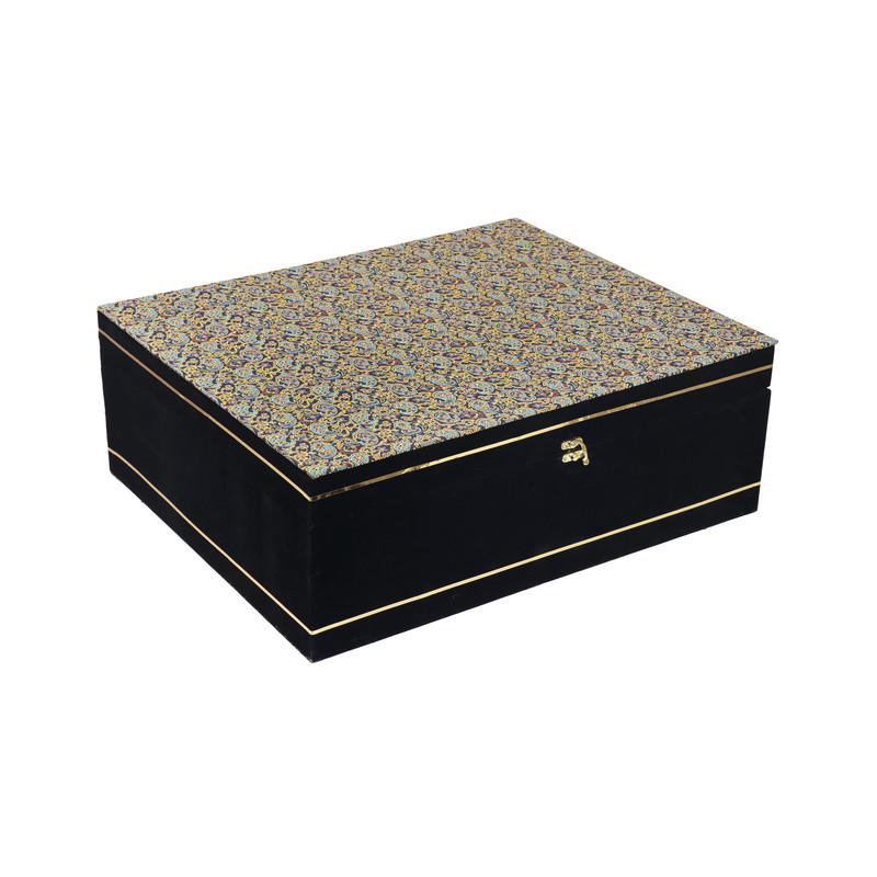 این مجموعه درون جعبهای مخملی ، با ابعاد ۵۰×۳۰×۲۰ سانتیمتر قرار گرفته است. وجود فوم محافظ درون جعبه، امنیت کامل اقلام را در زمان حملونقل و نگهداری تضمین میکند.