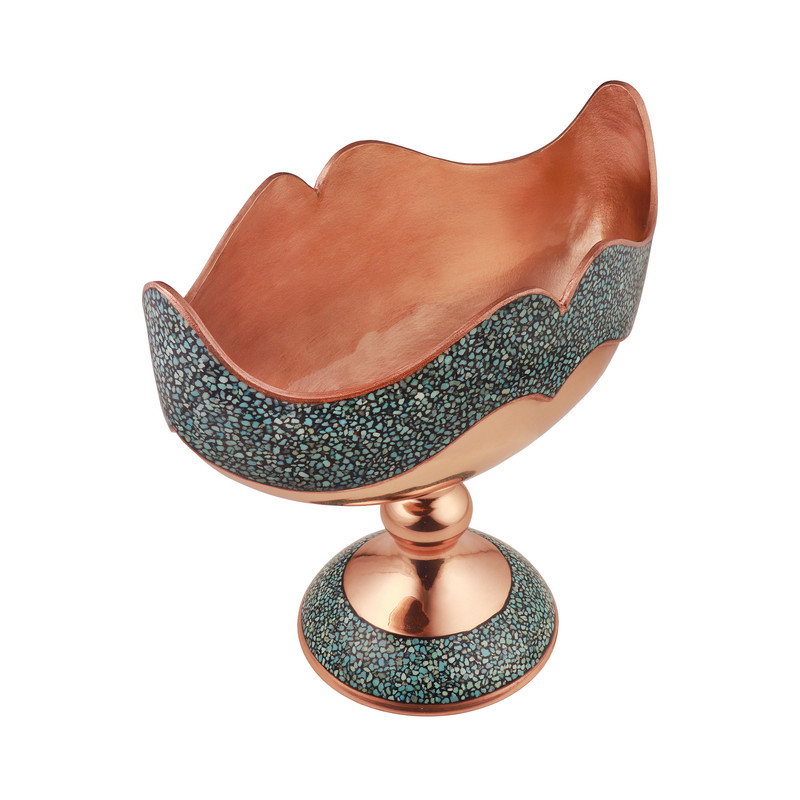 نوع هنر: این کشکول با هنر فیروزهکوبی ساخته شده است؛ هنری اصیل و پرقدمت که با نشاندن قطعات ریز سنگ فیروزه نیشابور بر روی سطح فلزی (مس)، اثری چشمنواز و ماندگار خلق میکند. این هنر که قدمتی چندصد ساله دارد، نهتنها از ارزش زیباییشناسی بالایی برخوردار است، بلکه نشانی از اصالت و فرهنگ ایرانی نیز به همراه دارد.
