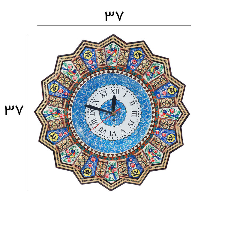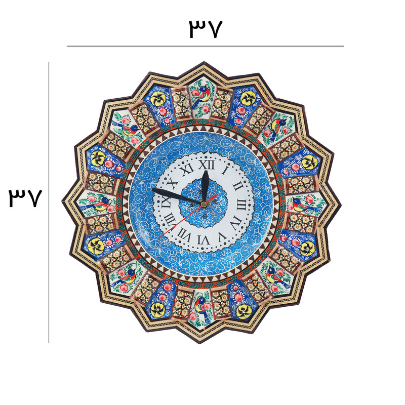 ساعت دیواری خاتم کاری مدل نقاشی گل و مرغ