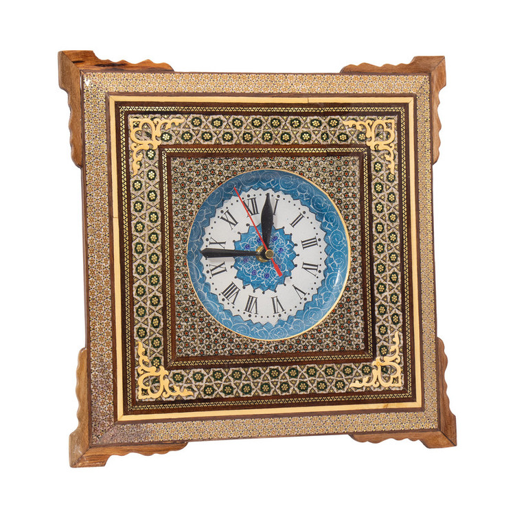 ساعت دیواری مربع با طراحی سنتی و ابعاد کلی ۳۲×۳۲ سانتیمتر
