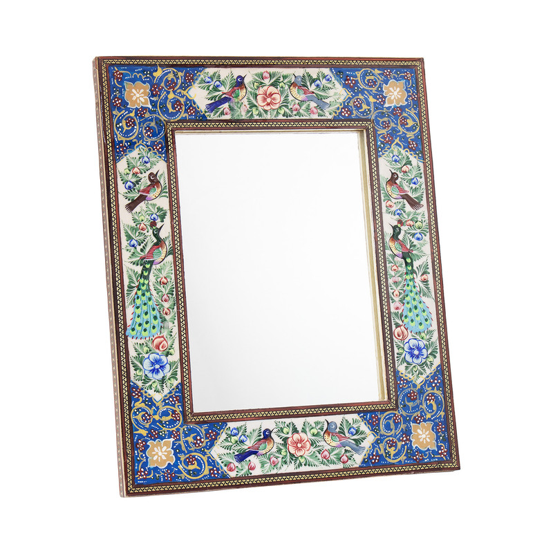 آینه قاب چوبی خاتمکاریشده با ابعاد داخلی ۱۳×۹ سانتیمتر