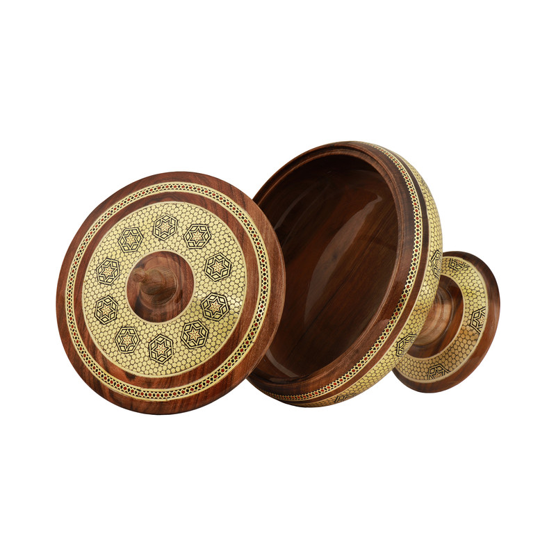 چوب و خاتم هر دو به رطوبت حساس هستند. بنابراین شستشوی این ظرف با آب اکیداً ممنوع است. برای تمیز کردن آن تنها از یک دستمال خشک و نرم استفاده کنید. محصول را در مکانهای مرطوب، در معرض باد مستقیم کولر یا تابش شدید آفتاب (که باعث ترک خوردن چوب میشود) قرار ندهید. از اسپریهای براقکننده چوب روی قسمتهای خاتم استفاده نکنید.