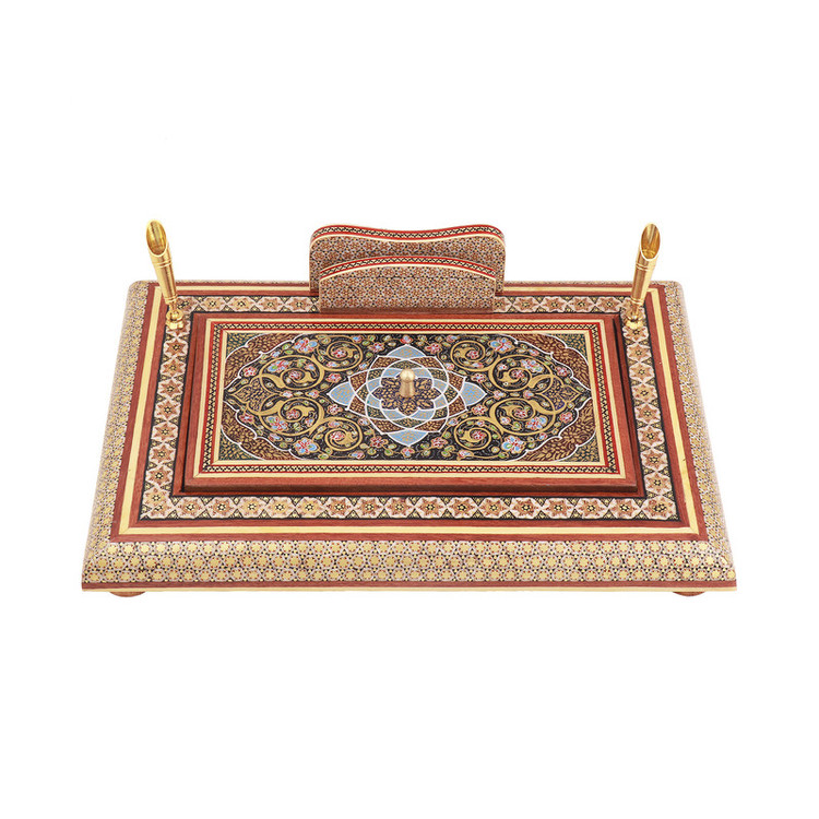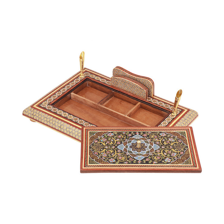 قلمدان خاتم کاری فرازهنر مدل درب دار نقاشی اسلیمی کد 04