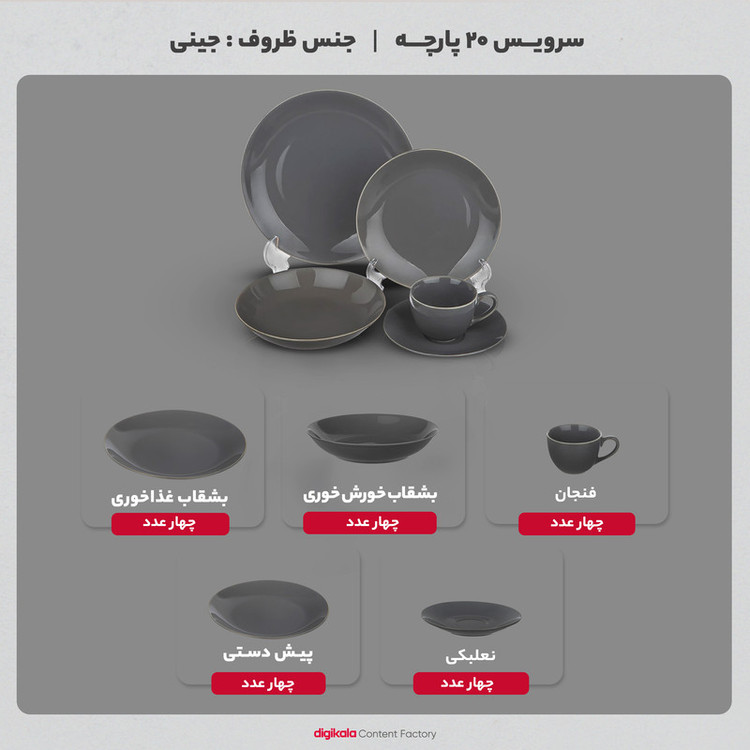 سرویس غذاخوری 20 پارچه کلارا مدل stoneware کد P-200