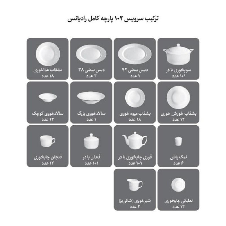 ترکیب سرویس 102 پارچه چینی زرین ایران: