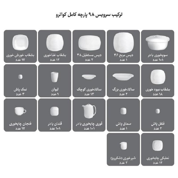 ترکیب سرویس 98 پارچه چینی زرین ایران: