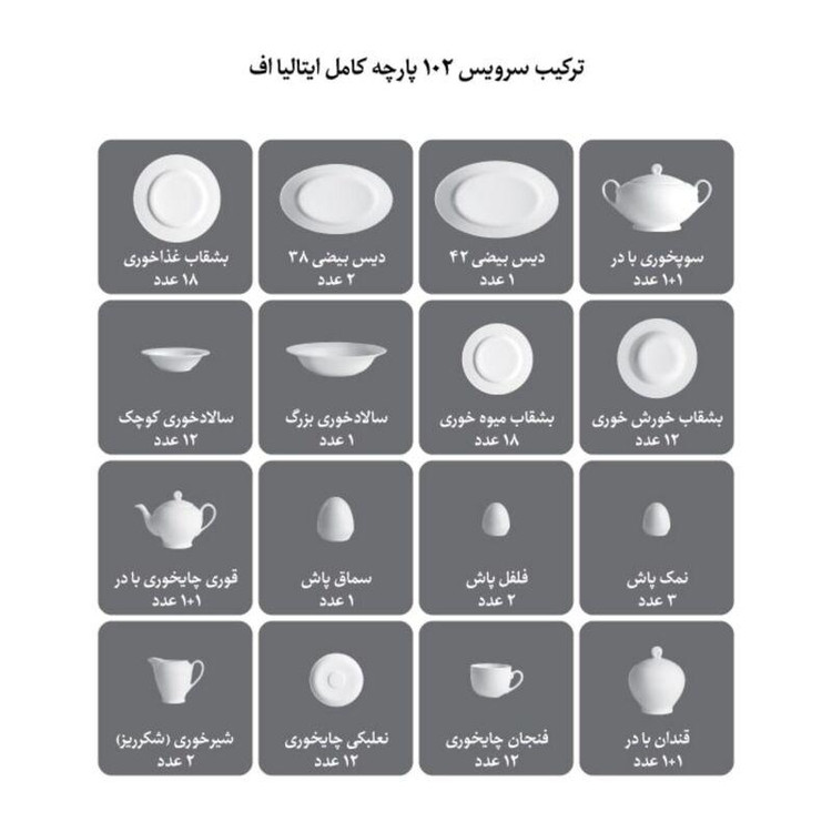 سرویس چینی زرین 12 نفره 102 پارچه هدیه طلایی درجه عالی