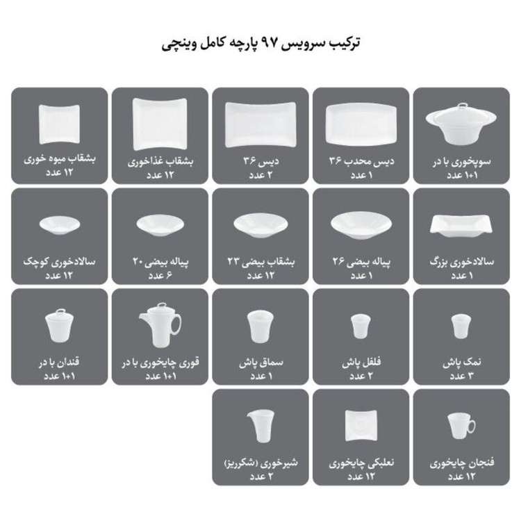 ترکیب سرویس 97 پارچه چینی زرین ایران :
