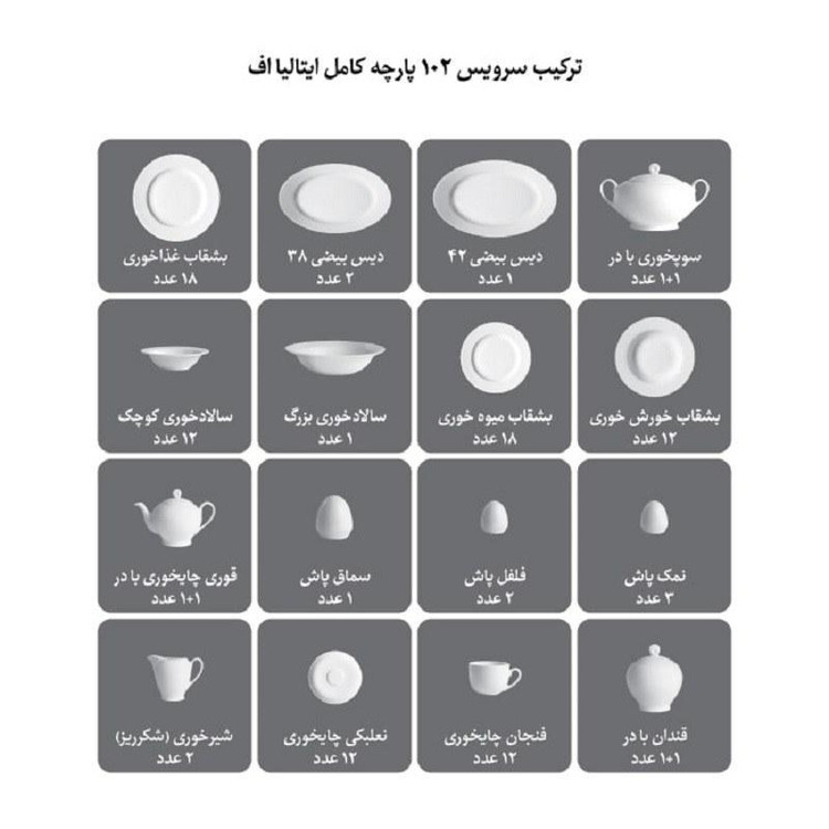 ترکیب سرویس 102 پارچه چینی زرین ایران: