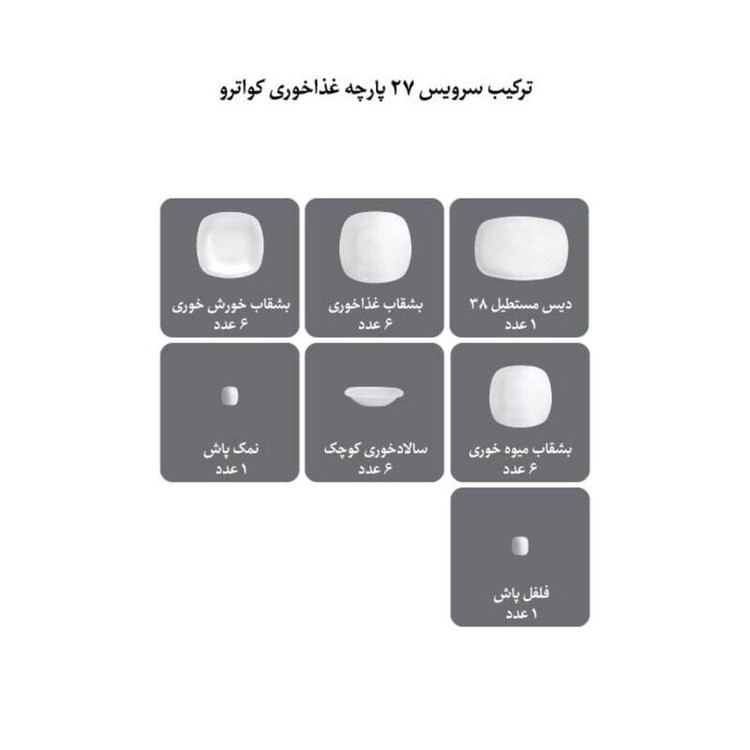 سرویس غذاخوری چینی زرین 6 نفره 27 پارچه مونت کارلو طلایی درجه عالی