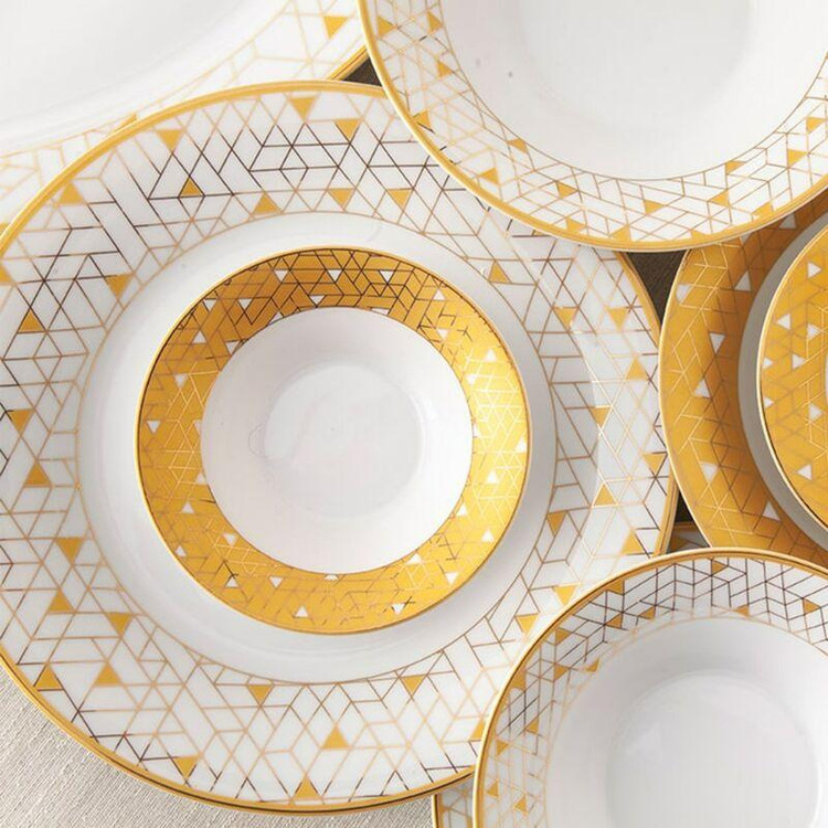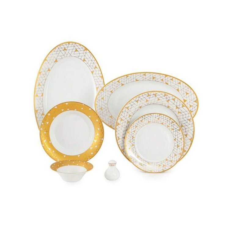 سرویس غذاخوری چینی زرین 6 نفره 35 پارچه ژئومتریکال طلایی درجه یک