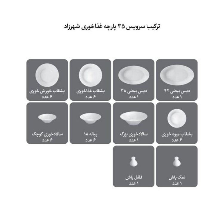 ترکیب سرویس 35 پارچه چینی زرین ایران:
